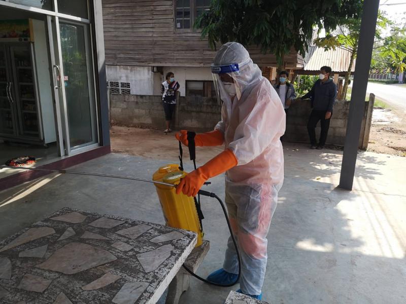 เจ้าหน้าที่ อบต. ออกพ่นยาฆ่าเชื้อป้องกันโรค CovId – 19