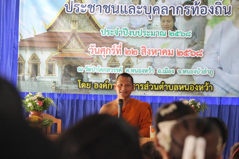 รายละเอียด : วันที่ 22 สิงหาคม 2568 องค์การบริหารส่วนตำบลหนองหว้า ได้จัดโครงการอบรมจริยธรรมคุณธรรมให้กับประชาชนและบุคลากรท้องถิ่น ประจำปีงบประมาณ พ.ศ.2568 โดยมี นายวิเชียร วงสิงห์ นายกองค์การบริหารส่วนตำบลหนองหว้า เดินทางมาเป็นประธานกล่าวเปิดโครงการ ฯ พร้อม นายสนอง ละโคตร รองนายก อบต.,นายประสิทธิ์ เสียงล้ำ รองนายก อบต.,นางหนูแดง สิทธิศักดิ์ เลขานุการนายก อบต., ข้าราชการ,พนักงานส่วนตำบล,ประธานสภา อบต.,สมาชิกสภา อบต.,ผู้ใหญ่บ้านหมู่ที่ 4 เข้าร่วมในพิธีเปิดโดยพร้อมเพรียง โดยมี นายเกียรติคุณ แว่นศิลา นักวิชาการศึกษาชำนาญการ กล่าวรายงานในการจัดโครงการ ฯ เพื่อเพิ่มพูนความรู้ให้กับคณะผู้บริหารฯ,สมาชิกสภา อบต.,พนักงานส่วนตำบล และพนักงานจ้าง มีหลักการและแนวทางปฏิบัติงาน เสริมสร้างให้บุคลากรเป็นคนดีมีคุณธรรม พัฒนาคุณภาพชีวิตสังคมคุณภาพนำไปสู่การพัฒนา การทำงานที่ซื่อสัตย์สุจริต มีคุณธรรม มีความเป็นผู้นำในสังคม ณ ศาลาการเปรียญวัดป่าโคกสวรรค์ หมู่ที่ 4 ตำบลหนองหว้า อำเภอเมืองหนองบัวลำภู จังหวัดหนองบัวลำภู
