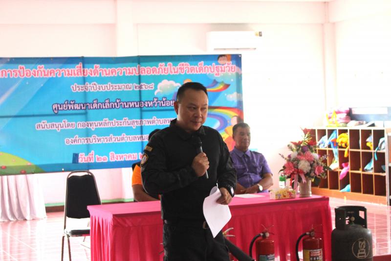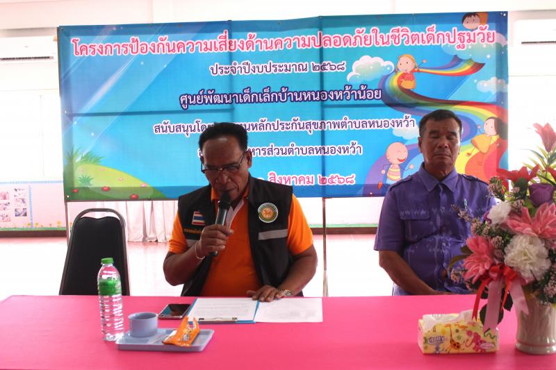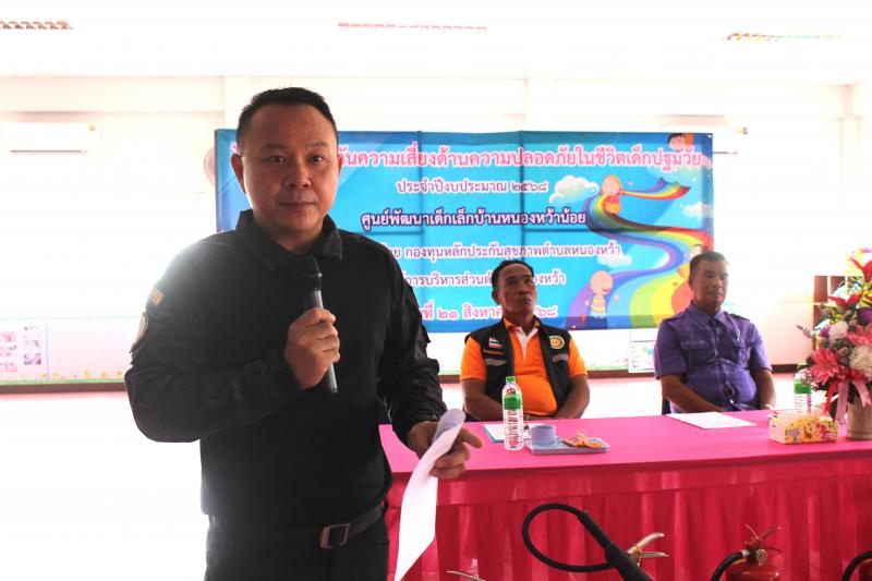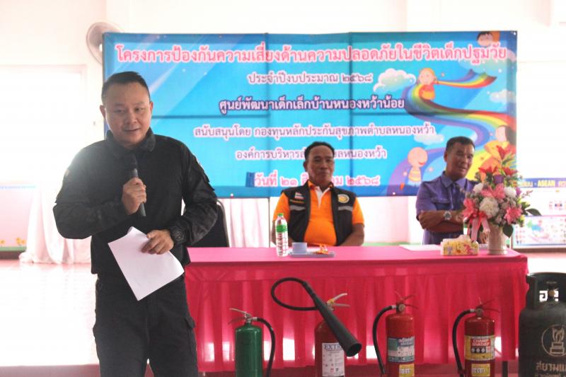 รายละเอียด : วันที่ 21 สิงหาคม 2568 องค์การบริหารส่วนตำบลหนองหว้า ร่วมกับ ศูนย์พัฒนาเด็กเล็กบ้านหนองหว้าน้อย ได้จัดโครงการป้องกันความเสี่ยงด้านความปลอดภัยในชีวิตเด็กปฐมวัย ประจำปีงบประมาณ 2568 โดยมีนายสนอง ละโคตร รองนายก อบต. เดินทางมาเป็นประธานกล่าวเปิดโครงการฯ พร้อม นายประสิทธิ์ เสียงล้ำ รองนายก อบต.,นางสุภาพร สิงห์ชัย ประธานสภา อบต.,กำนันตำบลหนองหว้า , คณะกรรมการศูนย์พัฒนาเด็กเล็ก,ข้าราชการ,พนักงานส่วนตำบล,คณะครูศูนย์พัฒนาเด็กเล็กบ้านหนองหว้าน้อย มีวัตถุประสงค์ให้ ครู ผู้ดูแลเด็ก และผู้ปกครองของนักเรียนศูนย์พัฒนาเด็กเล็กบ้านหนองหว้าน้อย วิธีป้องกันเหตุและการเอาตัวรอดเมื่อเกิดเหตุ พร้อมทั้งลดอุบัติเหตุที่อาจจะเกิดขึ้นกับเด็กปฐมวัยและการซักซ้อมแผนป้องกันอัคคีภัย เพื่อเพิ่มความปลอดภัยในชีวิตและทรัพย์สินของประชาชน ลดความสูญเสียต่อชีวิตและทรัพย์สิน ณ ศูนย์พัฒนาเด็กเล็กบ้านหนองหว้าน้อย ตำบลหนองหว้า อำเภอเมืองหนองบัวลำภู จังหวัดหนองบัวลำภู